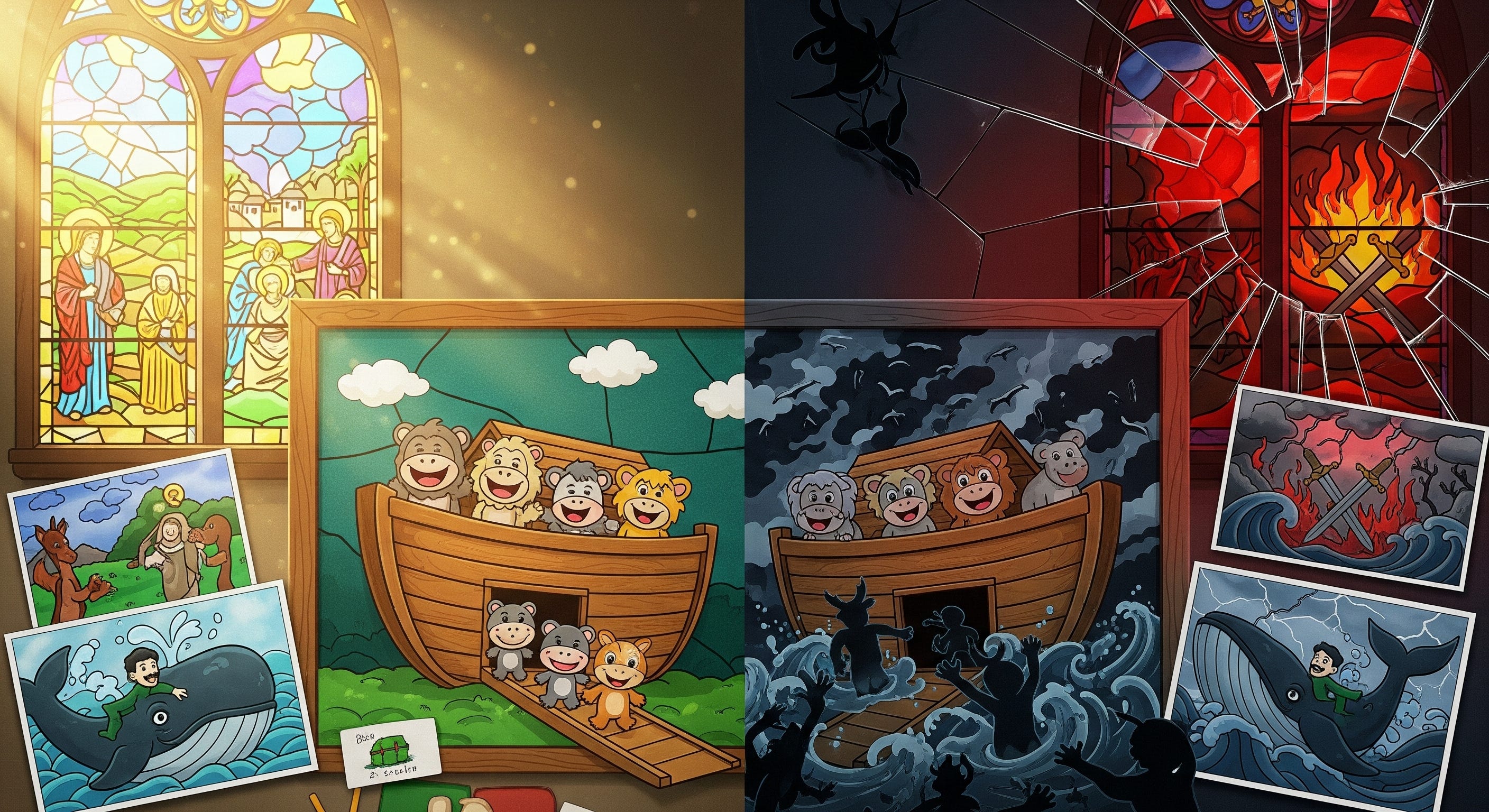 When you went to Sunday school as a kid, you probably got the safe stories: Noah’s Ark with the animals, Jonah and the whale, David slaying Goliath. Bright posters, felt boards, and gentle morals.